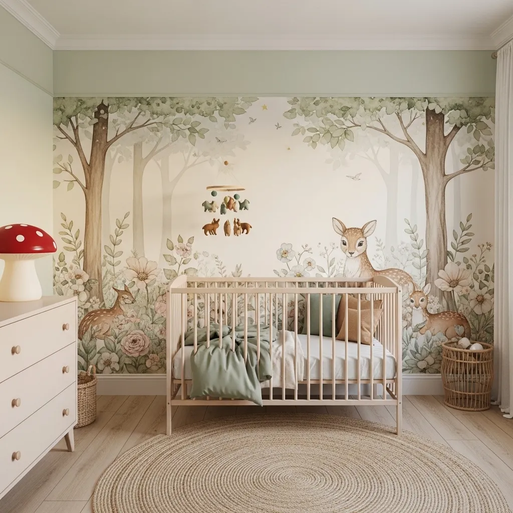 If hiring a muralist isn’t in the budget, peel-and-stick woodland murals have improved dramatically in quality and there are some genuinely stunning options available. The key is choosing one in soft, muted, watercolor tones rather than graphic cartoon-style imagery — the softer the palette, the more it feels like art and the longer it stays beautiful as she grows.