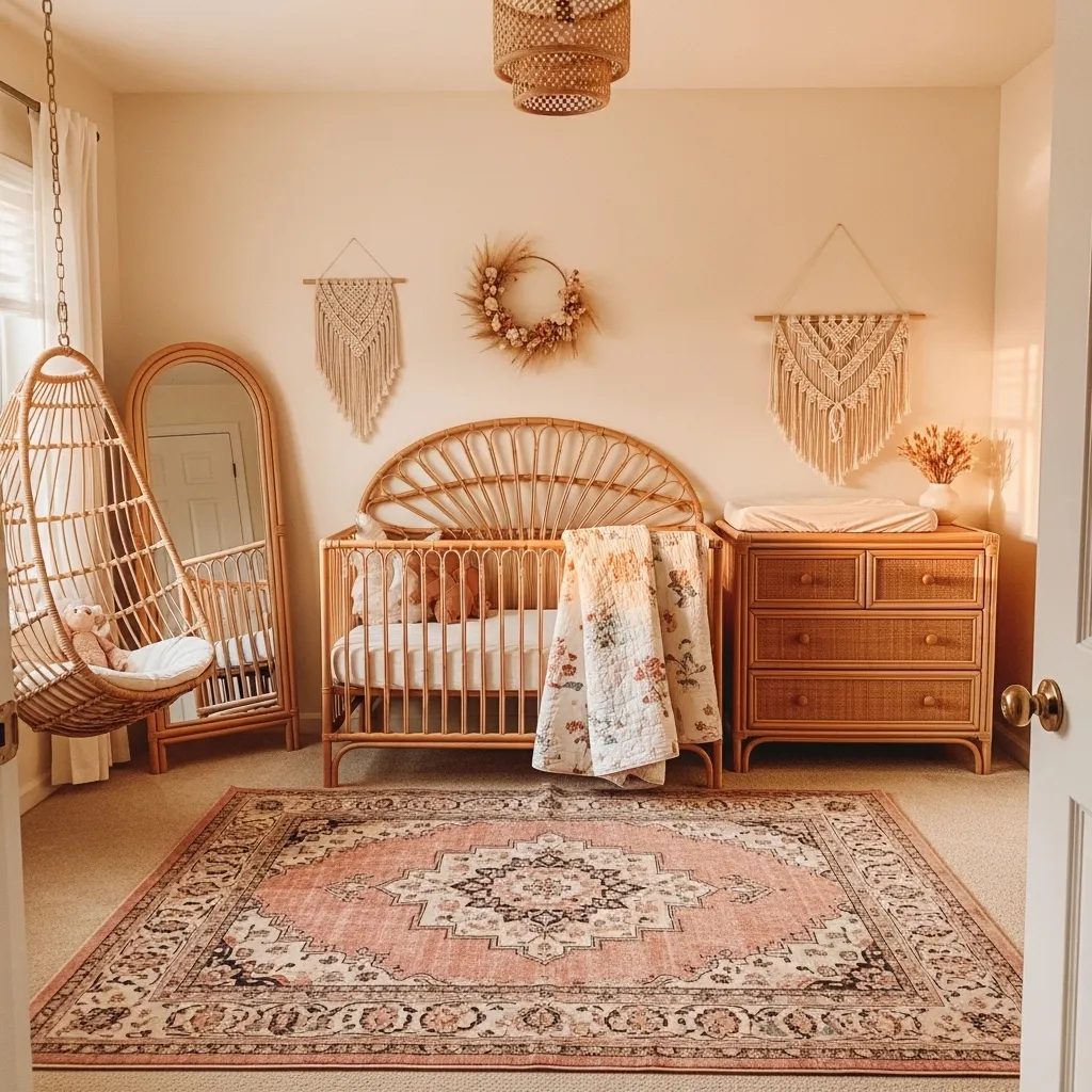 8. Vintage Pink and Rattan Boho Nursery