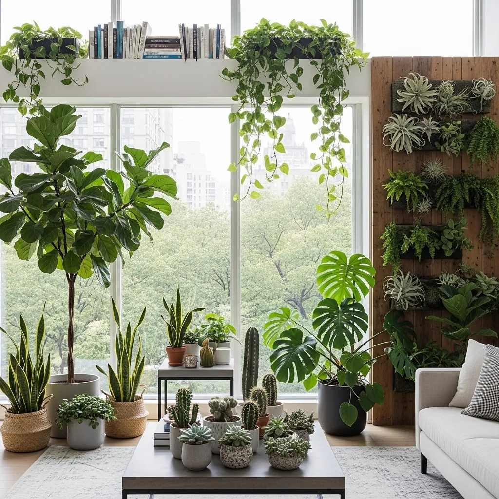 The key is choosing plants appropriate to your light conditions and selecting pots that coordinate with your aesthetic. Assess your natural light—bright light supports most plants, medium light works for pothos and philodendrons, low light limits options to snake plants and ZZ plants. Choose varied plant types and sizes—a large statement plant (fiddle leaf fig, monstera, bird of paradise) anchors a corner, medium trailing plants (pothos, string of pearls) soften shelves, small plants (succulents, air plants) accent surfaces. Pot everything in containers matching your aesthetic—minimal white or concrete for modern, terracotta for warm boho, vintage vessels for cottagecore, matching ceramic for cohesive look. Group plants at varied heights creating mini indoor gardens. Care for them properly—healthy, thriving plants look aesthetic; struggling, dying plants undermine it. The plants bring essential natural elements that complete aesthetic rooms.