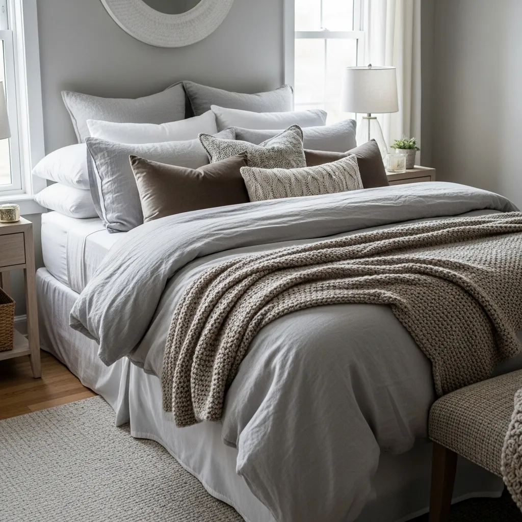 The key is layering quality textiles in your color palette for both comfort and visual richness. Start with good sheets in white, cream, or your neutral base color—crisp cotton or soft linen depending on your aesthetic. Add a substantial duvet or comforter in coordinating color. Layer multiple pillows—standard sleeping pillows, larger euro shams at the back, smaller decorative pillows in front creating depth and abundance. Mix textures—smooth cotton, nubby linen, soft velvet, chunky knits—within your color palette. Drape a throw blanket artfully across the foot of the bed. Keep everything clean and pressed—wrinkled, stained bedding undermines any aesthetic. Make your bed daily, styling it intentionally rather than just pulling covers up. The beautifully layered bed becomes your room’s centerpiece and most Instagrammable element, immediately establishing aesthetic credibility.