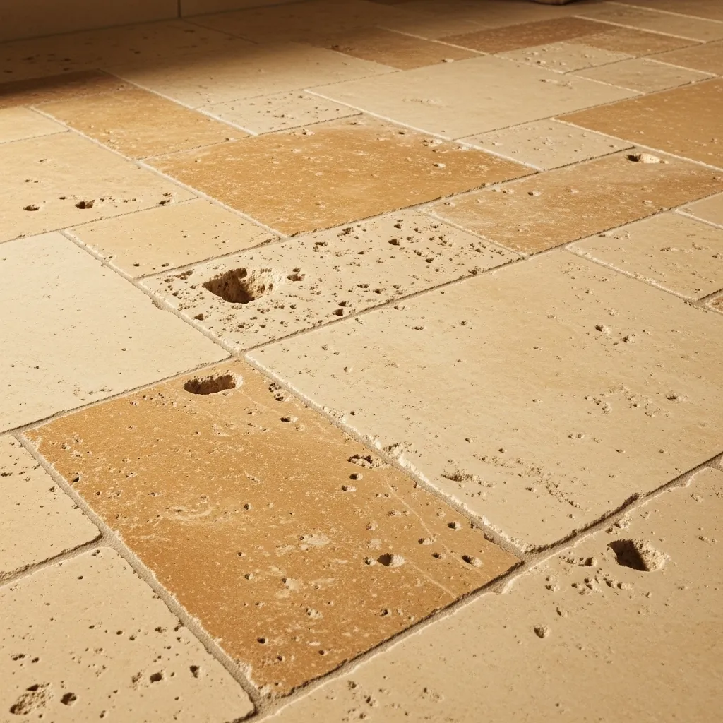 The characteristic holes and voids of travertine — the natural features created by gas bubbles in the limestone during its geological formation — are the specific material quality that most divides opinion about the stone. Traditional installation fills these voids with grout, creating a relatively smooth surface with the holes visible as slightly recessed filled marks; contemporary and historically authentic installation leaves some voids unfilled, creating a surface with actual depth variation that’s more tactilely interesting but requires more careful cleaning maintenance. The unfilled void approach creates the most authentically ancient quality and the most beautiful visual depth.
