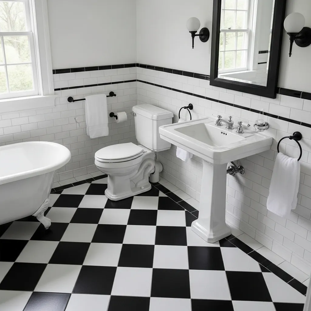 What makes this pattern so enduring is its versatility—it works in tiny powder rooms and spacious master baths, in vintage-inspired spaces and contemporary ones, in traditional homes and modern apartments. The key is balancing the busy floor with simpler elements above—white walls, classic fixtures, minimal pattern elsewhere. The checkerboard provides all the visual interest you need, so everything else can be relatively calm and simple. Use matte or honed tiles rather than super glossy ones for a more sophisticated look that also shows fewer water spots. This is one of those design choices that will never go out of style.