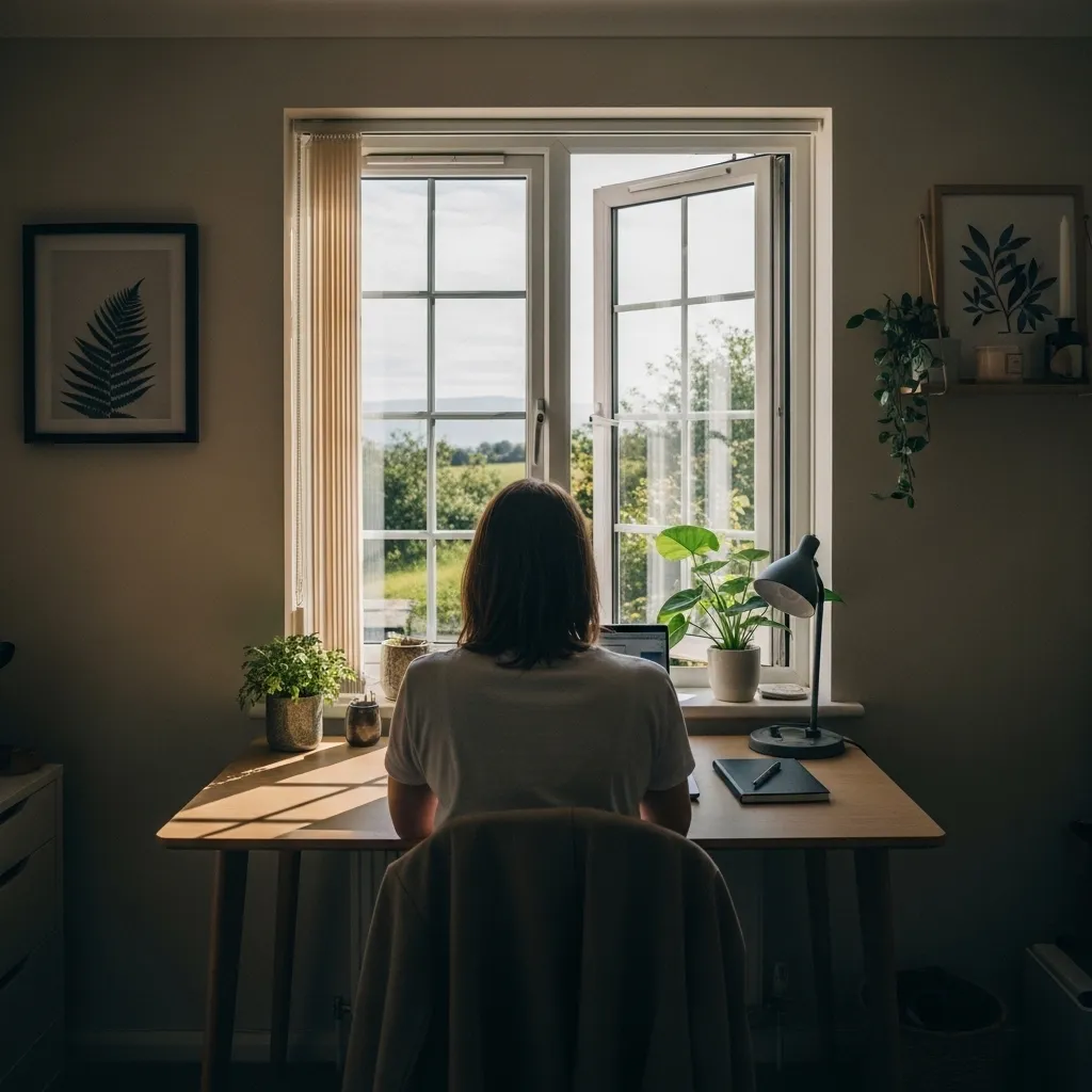 Positioning the desk to face a window rather than a wall is the single home office spatial decision with the highest impact on the daily experience of working — the difference between spending eight hours looking at a wall and spending eight hours looking at a changing view of sky, garden, trees, weather, and natural light is significant enough to affect mood, energy, and the quality of thinking over the course of a workday. The view provides the natural breaks and micro-rests that sustained focus requires, and the changing quality of natural light throughout the day creates a quality of temporal rhythm in the office that facing a wall entirely obscures.
