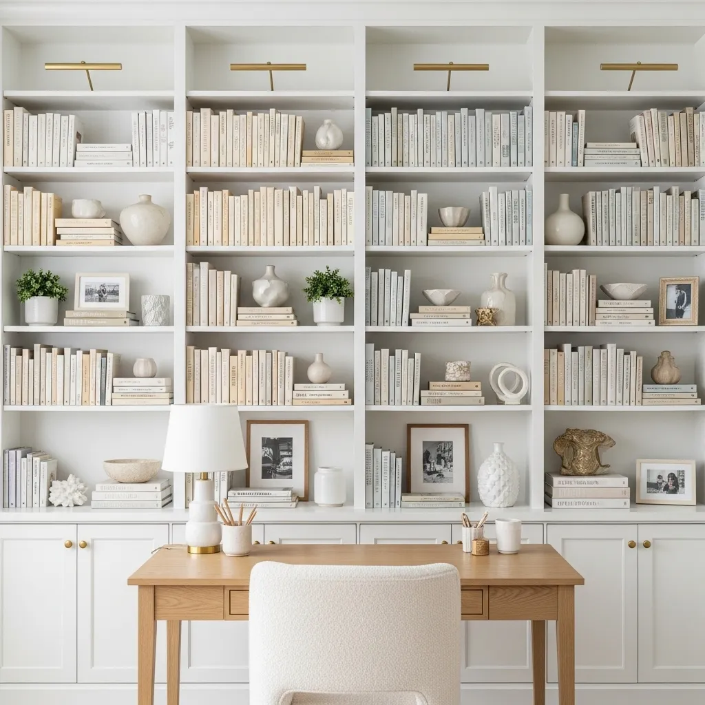 A floor-to-ceiling built-in bookcase wall in a home office creates the most immediate and most powerful sense of intellectual presence of any single office design element — it communicates that this is a space where ideas live and have accumulated over time, and it creates the specific quality of a private library that makes working at the desk in front of it feel like working in one of the most honored spaces in human intellectual history. The library wall is the backdrop that makes every video call, every focused work session, every morning coffee at the desk feel specifically significant and specifically personal.