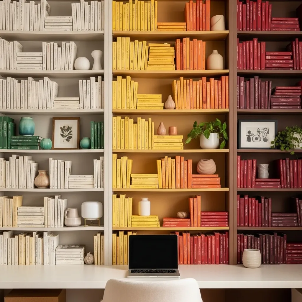 The arrangement of books by color requires accepting a temporary loss of subject-based organization in favor of aesthetic organization, which feels more radical before it’s done than it does after — in practice, most people who color-arrange their books find that they remember books by their cover appearance and can navigate their color-organized collection efficiently within a few weeks of the arrangement. The books are still organized and findable; they’re just organized by a visual property rather than a subject property, and the aesthetic benefit is so significant that it consistently justifies the organizational compromise.