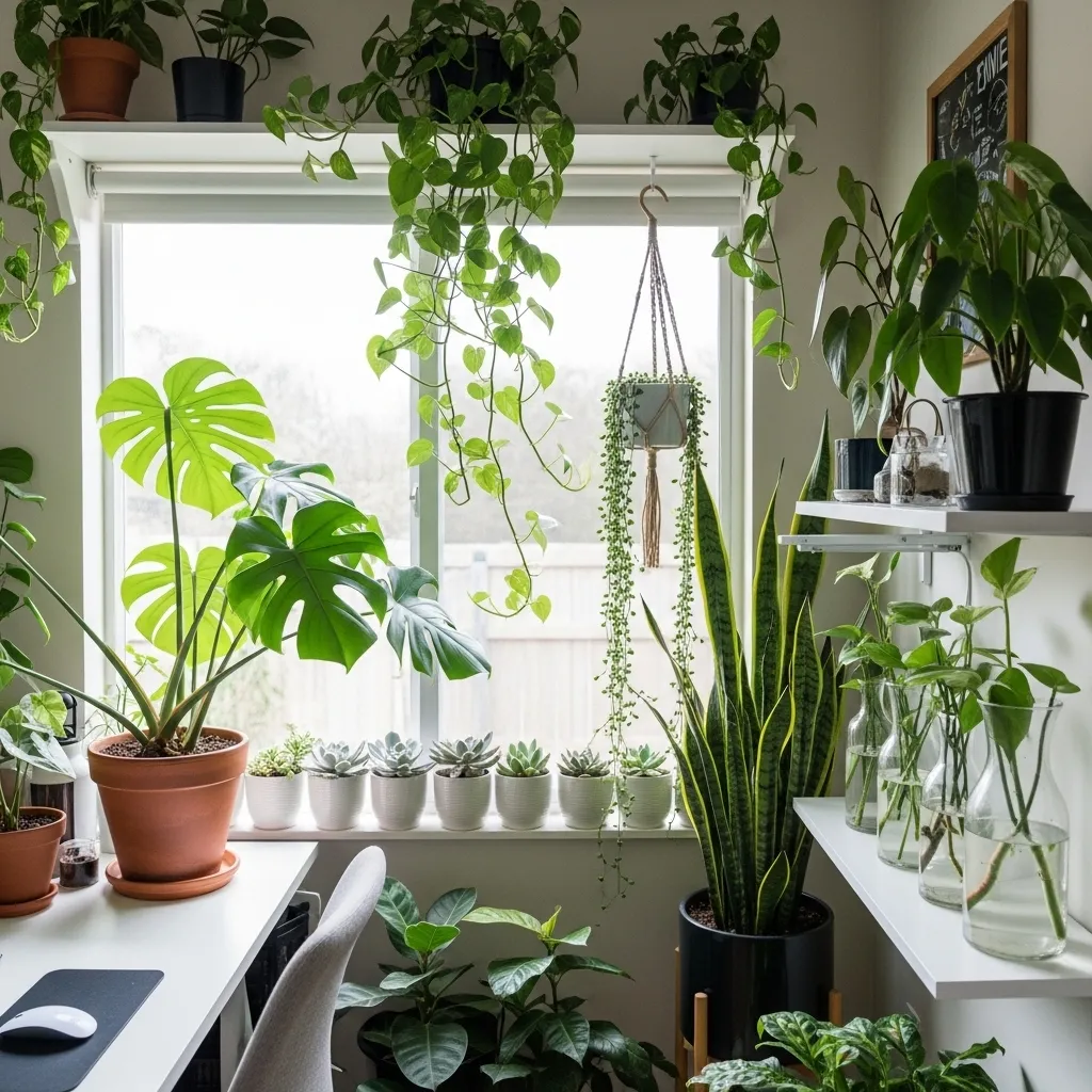 The distribution of plants at multiple heights and positions throughout the office is what creates ambient plant presence rather than a plant display — when there’s a large plant in the corner, a trailing plant by the window, a few small plants on the desk, and a hanging plant near the ceiling, the eye encounters plant life wherever it rests during the workday, creating a consistent connection to the natural world that a single large plant in one corner doesn’t provide. This ambient quality of nature throughout the office is the specific condition that creates the stress-reducing, focus-supporting effect — not the presence of plants as decoration, but plants as genuine environmental participants in the working space.