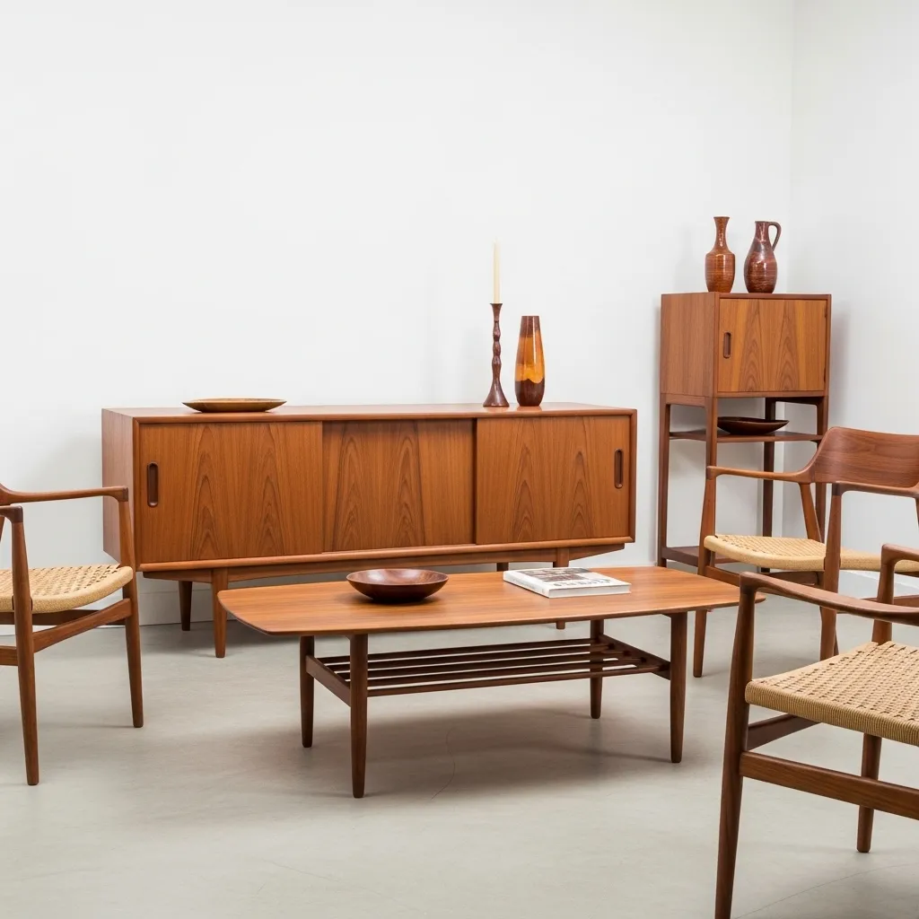 The warm, rich woods—particularly teak, walnut, and rosewood—are fundamental to authentic mid-century and retro design. These materials defined an era of craftsmanship and bring organic warmth, beautiful grain patterns, and timeless appeal. Quality wood furniture from this period was built to last and often represents better construction than contemporary equivalents.