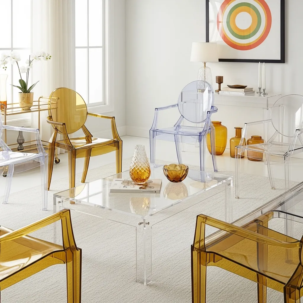 Lucite and acrylic furniture epitomized the space-age, forward-looking optimism of 1960s-70s design. The transparent materials created modern, light-reflecting furniture that felt futuristic and sophisticated. Clear pieces maintain visual openness while providing function, making them particularly effective in smaller spaces.