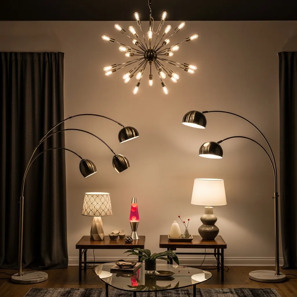 Lighting fixtures from the mid-century and retro periods are highly distinctive and sculptural—they function as art pieces while providing illumination. Iconic designs like Sputnik chandeliers, arc floor lamps, and tripod table lamps immediately communicate retro aesthetic and create focal points.