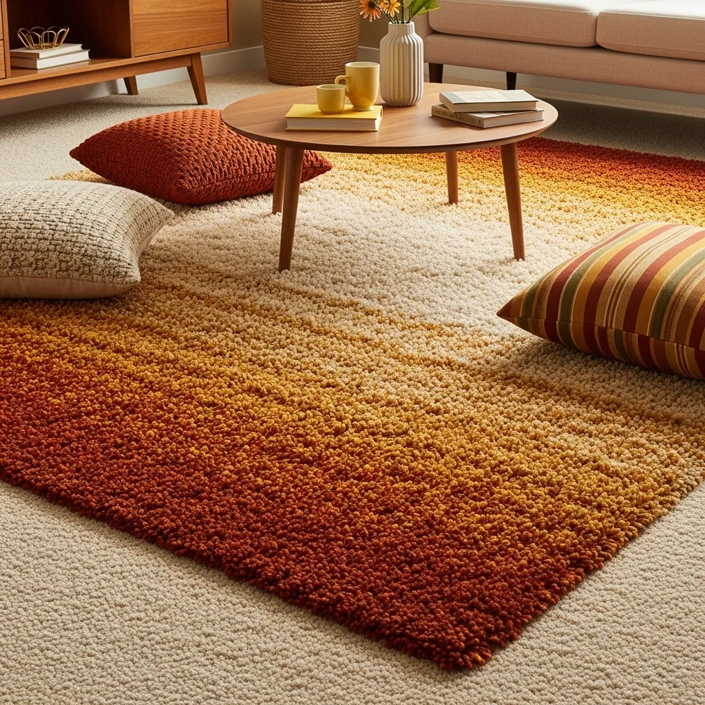 The key is choosing quality shag in period-appropriate colors and styling it authentically. Select deep-pile shag rugs (1.5-2 inches or deeper) in 70s colors—harvest gold, rust, cream, chocolate brown, or avocado green. Position shag rugs in seating areas where the texture can be appreciated and where floor seating might occur. The shag works beautifully with low-profile furniture that doesn’t hide the rug’s texture. For maximum authenticity, consider wall-to-wall shag in a dedicated room if you’re committed to the aesthetic—modern shag is easier to maintain than vintage versions. Maintain shag properly—regular vacuuming and occasional deep cleaning keep it looking luxurious. The shag provides that essential 70s texture and creates cozy, inviting foundation that’s both visually and tactilely retro.