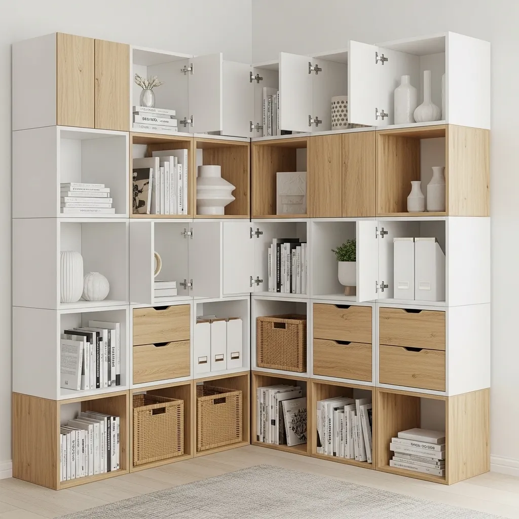 Modular cube storage systems offer incredible flexibility and customization—you can configure them to your exact needs and reconfigure as those needs change over time. The individual cubes can be arranged in countless ways, and you can mix open cubes with closed cabinets, drawers, or fabric bins to create the perfect balance of display and hidden storage. It’s shelving that evolves with you.