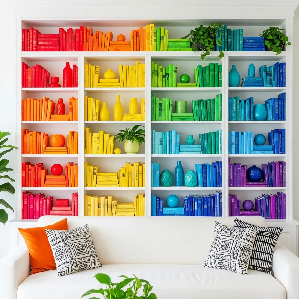 This approach works best with larger book collections where you have enough of each color to create substantial sections. The visual payoff is immediate—that rainbow progression across your shelves is genuinely beautiful and photographs wonderfully. Some people worry about not being able to find books organized this way, but many readers remember their books by cover color anyway, and the visual beauty often outweighs the slight inconvenience. You can combine color organization with other styling—stack some books horizontally in their color section, add coordinating decorative objects, include plants. The key is commitment to the system and being willing to prioritize visual impact.