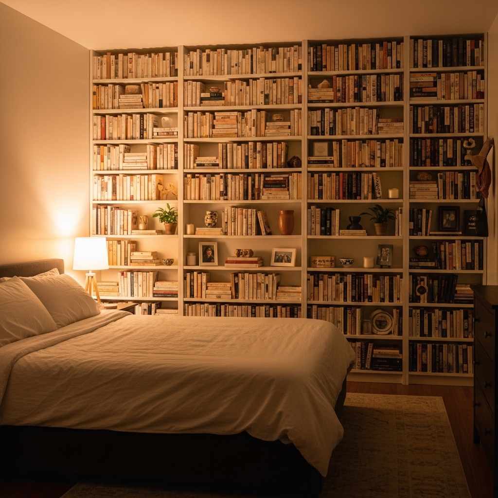 A bedroom with a full wall of floor-to-ceiling bookshelves creates the most specifically literary and most intellectually warm sleeping environment — a room where going to sleep is going to sleep surrounded by books, where the last visual experience before sleep is the accumulated knowledge and pleasure of a personal library. The bookshelf bedroom creates a quality of comfort that goes beyond the physical — the psychological comfort of being surrounded by books, by the specific warmth of a personal library, is a comfort that book-lovers consistently describe as genuinely restorative.