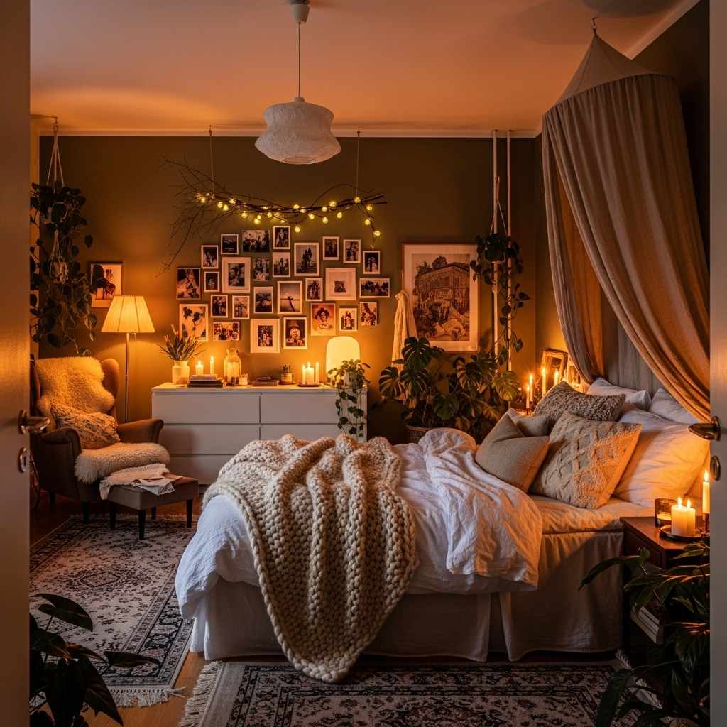 A completely realized cozy bedroom — where every element from wall color through bedding layers through lighting through textiles through plants through personal objects through scent works together in a cohesive, mutually reinforcing whole — creates an environment of extraordinary atmospheric quality that no individual element, however excellent, creates alone. The complete cozy bedroom is not the sum of its individual elements but the product of their relationships — the way the warm wall color makes the lamp light appear warmer, the way the layered bedding makes the canopy feel more enveloping, the way the personal gallery wall makes the botanical atmosphere feel more specifically yours.