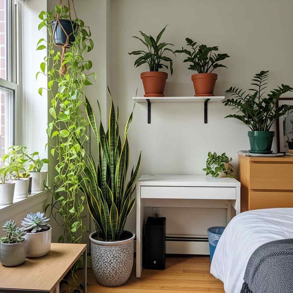 The specific plants selected for a bedroom need to work in the bedroom’s specific light conditions — snake plants, ZZ plants, and pothos are among the most low-light tolerant and most genuinely beautiful bedroom plants, requiring virtually no natural light while maintaining their visual quality; succulents and cacti require a sunny window but create extraordinary architectural beauty in the right light conditions. The selection of plants appropriate to the actual light conditions of the specific bedroom is the most important botanical decision, because a plant in inadequate light gradually deteriorates and creates the opposite of the intended botanical warmth.
